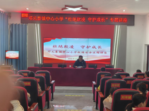 本网湖南讯(通讯员 段海军)为筑牢校园安全防线,呵护学生健康成长,12月19日,湖南省武冈市邓元泰镇中心小学组织开展“杜绝欺凌,守护成长”为主题的校园安全专题讲座。本次讲座由学校政教处段海军同志担任主讲,六年级部分师生代表参加讲座。