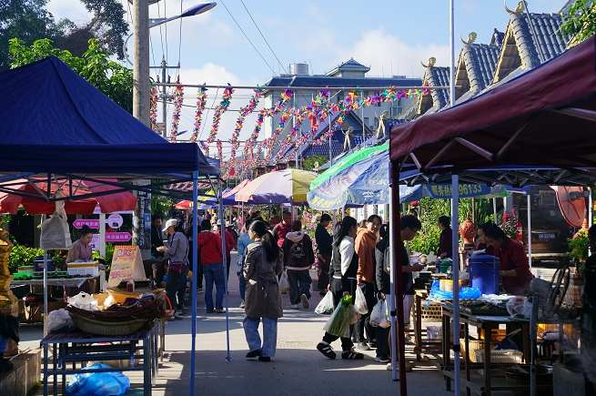 “我们不是仅在办比赛,更是在运营一个‘消费场景’。”赛事组织方勐捧镇党委书记李二说。比赛期间,整个勐捧镇仿佛被按下“加速键”,形成了一个以球场为核心、遍布多个党员服务岗的“活力磁场”,一个组织引领、市场响应、群众受益的“赛事经济圈”清晰可见,从球场出口延伸出去的街道,自然汇聚成“快闪市集”,本地农户的优质果蔬、巧手匠人的非遗工艺品、特色小吃的热辣香气,共同构成一幅“沉浸式”消费场景。