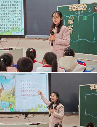 课堂之上,吴老师的教学设计新颖独到,以“学生主场”的理念重构学习空间,引导学生“手脑口并用”,在品读自然之趣中激发思维火花。她的评价语言春风化雨,精准点拨即时校准,充分激发了每一位学生的学习内驱力。整堂课学生兴趣盎然、积极响应,展现了高效课堂的生动风貌。其精湛的教学技艺与深厚的育人情怀,赢得了评委专家“设计巧、互动活、评价暖”的高度评价。课后,来自各校的听课教师反响热烈,纷纷围绕教学设计、课堂互动等环节与吴老师进行热情交流和探讨,这充分证明了该课例的示范价值与借鉴意义。