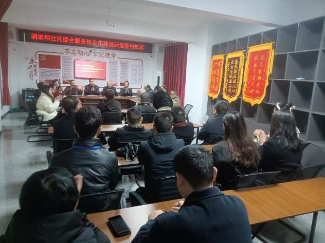 本网四川达州讯(杜靖宇 观理 报道)为深入贯彻落实国家关于加强基层治理、完善社区服务的政策精神,盘活社区闲置资产,构建“公益服务有保障、商业运营可秩序”的社区发展新模式,实现资源换服务,合作共赢的目标。2025年12月23日上午,四川汇达未来科技有限公司董事会班子一行与通川区东城街道胡家坝社区党政班子成员共同开展就以“社企合作搭建平台,共同整合社会资源,多元开展服务项目,共同服务社区公益”为宗旨,在达州市中小徽企业商会及其党支部的支持指导下,彼此双方法定代表人(负责人)周世月女士与朱信任先生在达州市通川区东城街道胡家坝社区党委居委办公楼二楼会议室签署了合作建设运营“胡家坝社区综合服务体”协议书。本此签署仪式会议由张燕女士主持,出席这次参会有达州市中小微企业商会执行会长李涛、党支部书记田仁俊、妇联主席刘文英、副会长代表,会员企业代表、党小组长、副秘书长,全国基层党建网新媒体中心副主任兼驻达办主任杜靖宇、驻达记者观理,通川区东城街道胡家坝社区党委书记朱信任、社区党委副书记吉智能、社区两委党政工作人员,四川汇达未来科技有限公司董事长陈亚平、总经理李仁果、董事长助理何鸣飞、社区志愿服务者等,参会人数约近40人。
