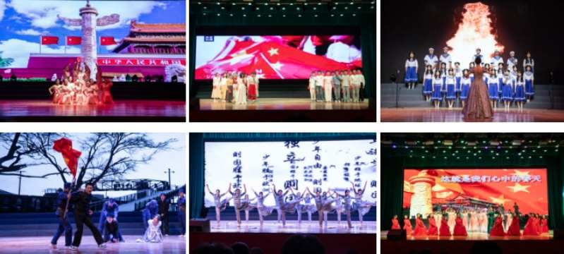 汇演在悲壮激昂的开场音乐《马踏樱花》中拉开序幕,旋律中交织的历史厚重感与爱国情怀,瞬间将现场观众带入那段刻骨铭心的峥嵘岁月。舞台上,学子们化身历史的传承者与艺术的演绎者,以真挚的情感、精湛的表演诠释初心使命。舞蹈《万疆》舒展大气,用灵动舞姿勾勒出山河壮阔的盛世图景;《巾帼证言》《觉醒年代》以极具张力的肢体语言,镌刻出革命先辈们为家国赴汤蹈火的英雄群像;音诗画《紫荆花盛开》《红日初升,其道大光》以声传情、以景表意,诉说着家国同心、生生不息的民族情怀;情景剧《青春的呐喊》重现 “一二九运动” 的热血赤诚,《如你所愿》则通过跨越时空的对话,让上一辈的盛世愿景在当下绽放成真,深深激发了同学们奋斗不息的激情与生逢盛世的豪情。整场演出中,同学们全情投入,或激昂高亢、或温情脉脉,在角色塑造中释放青春力量,让观众沉浸式感受历史温度与家国情怀。