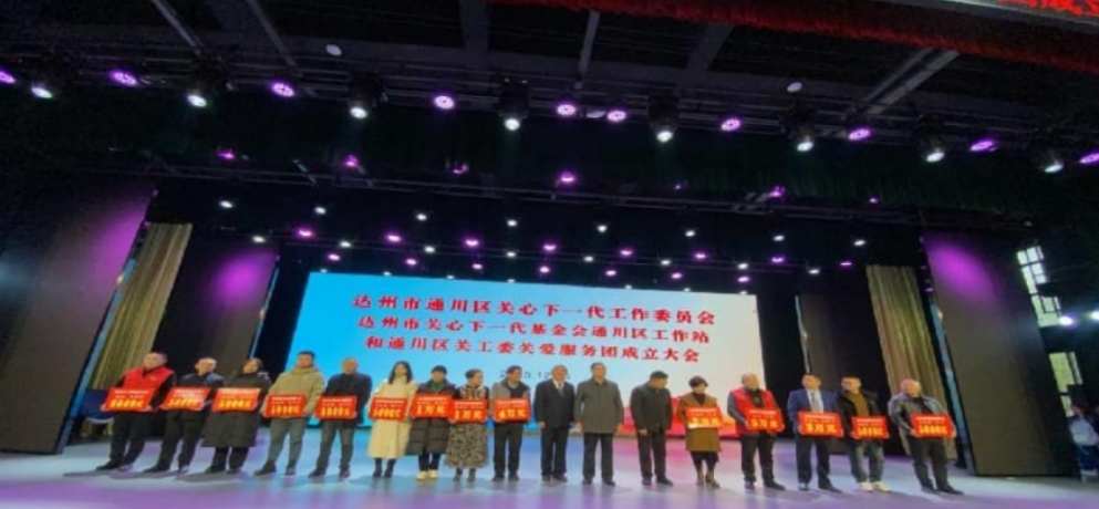 大会由通川区关工委副主任邱昌海主持。区关工委执行主任刘国唐宣读成立文件及人事任命,区委常委、组织部部长丁晓勇为关爱服务团授旗,市关工委常务副主任张洪波为服务团及基金站授牌。
