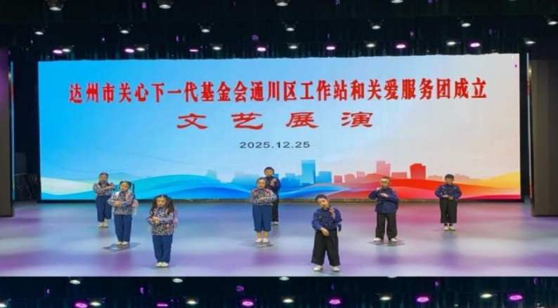本网四川达州讯(杜靖宇 观理 报道)2025年12月25日上午9时,达州市老年体育中心演出大厅内暖意融融,通川区关心下一代工作委员会关爱基金站、关爱服务团成立大会暨文艺展演在此隆重举行。市、区相关领导、单位代表及社会爱心人士齐聚一堂,共同见证这一推动全区关爱青少年事业迈向体系化、规范化的重要时刻。