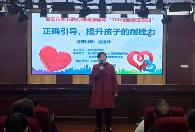 本网江西讯(喻莉莉 袁丽)为促进家校共育,共同培养孩子的心理韧性,近日,江西吉安市第五届心理健康辅导“100场服务进校园”活动走进吉安市田侯路小学。一场以“正确引导,提升孩子的耐挫力”为主题的心理健康讲座,吸引了众多家长到场聆听。