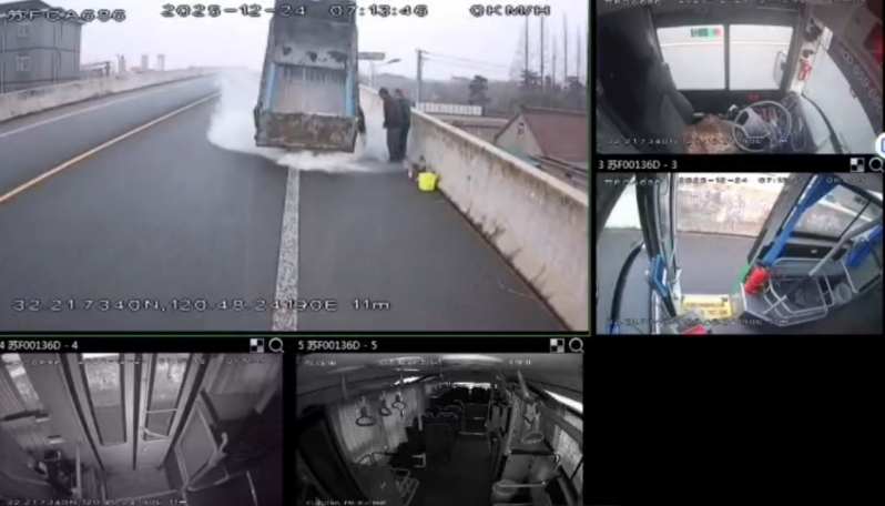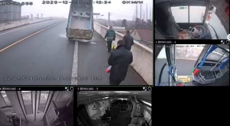 时间回溯至 12 月 24 日早晨 7 时许,天刚蒙蒙亮,吴荣春驾驶着 317 路公交执行从如皋林梓返回如东的常规班次任务。当车辆行驶至双甸立交桥南段时,前方道路上的一幕让他心头一紧:一辆正常行驶的货车车厢突然冒出滚滚浓烟,隐约可见跳动的明火,火势正顺着车厢缝隙快速蔓延,情况十分危急。
