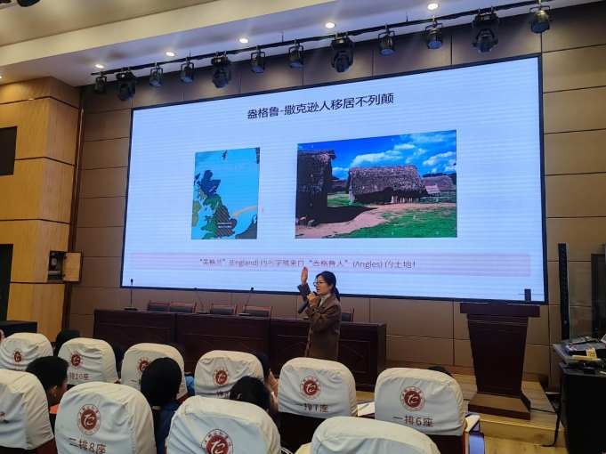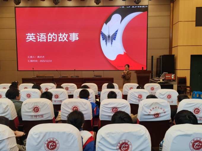 课堂上,李沐昀妈妈借助精心制作的PPT,从“盎格鲁-撒克逊人移居不列颠”的历史源头切入,生动溯源英语的起源。她通过直观图片、趣味词汇对比,让孩子们清晰感知盎格鲁-撒克逊英语的简洁特质;再聚焦1066年诺曼征服事件,具象呈现法语对英语的影响,以及“平民词”与“贵族词”的鲜明差异。随后,结合大航海时代与互联网时代背景,她讲述了英语如“海绵”般吸纳全球词汇的过程——从tofu(豆腐)、emoji(表情符号),到google(谷歌)、selfie(自拍),孩子们在鲜活词汇中真切感受英语的包容性与旺盛生命力。
