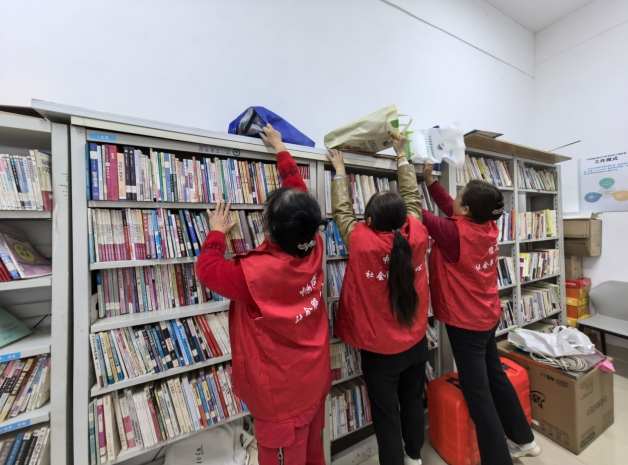 空间营造的过程,也是凝聚人心、促进融合的过程。3名核心志愿者与15名热心村民组成施工小组,明确职责分工,各司其职推进空间改造。志愿者负责物资搬运、场地清理、工具协调等统筹工作,村民们则主动承担桌椅组装、墙面装饰、图书整理等具体任务。经过各方共同努力,原本闲置杂乱的15平米场地完成华丽变身,设施完善、功能多元、环境舒适,并配备2000册图书、8套桌椅、一套沙发且管理条例清晰的“简享空间”,真正成为村民家门口的“精神驿站”。