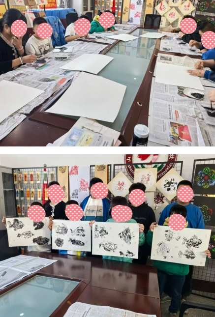 活动现场,充满古韵的教室氛围里,老师通过多媒体展示为孩子们讲解拓印的历史渊源与文化价值,随后手把手指导大家完成铺宣纸、蘸墨、拍拓的完整流程。孩子们专注地挥动工具,指尖起落间,一幅幅带着古朴纹理的拓印作品逐渐成型,在作品展示环节,大家踊跃分享创作心得,互相欣赏点赞,在轻松互动中增强了自信与合作意识。