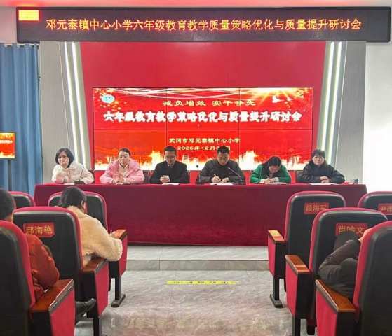 本网湖南讯(通讯员 李倩男)为优化教学策略,提升毕业班育人质量,12月30日,湖南省武冈市邓元泰镇中心小学召开2025年秋季六年级毕业班工作研讨会。学校领导、相关部门负责人及六年级全体教师参加会议,共同研讨毕业班教学工作。