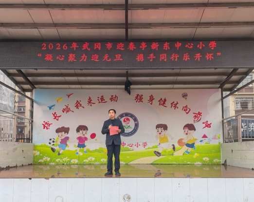 本网湖南讯(通讯员 钟叶青 马建伟)为庆祝元旦佳节,丰富教职工文化生活,增强团队凝聚力,营造团结、和谐、向上的校园氛围,12月30日下午3:30,湖南省武冈市迎春亭新东中心小学“凝心聚力迎元旦 携手同行乐开怀”主题教职工工会活动在学校足球场隆重举行。学校全体教职工齐聚绿茵场,共同迎接新年的到来。此次活动由学校工会副主席周琼主持。