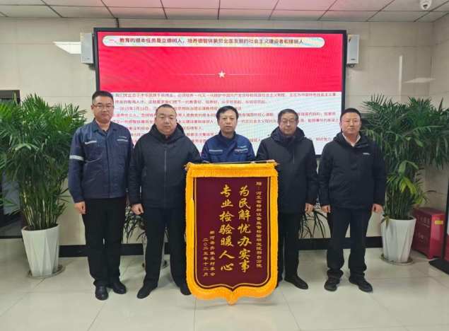 2025年12月29日,河北省邢台市新河县市场监督管理局受齐家庄村委会委托,将一面写有“为民解忧办实事 专业检验暖人心”锦旗及感谢信,送到河北特检院邢台分院党支部,以此致谢该分院特事特办,高效完成齐家庄回迁楼20台电梯检验工作。