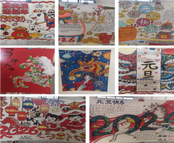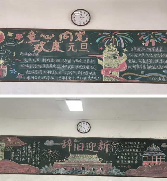 各中队还围绕“迎元旦、贺马年”精心创作主题黑板报,将新年祝福、传统习俗、成长感悟融入版面设计。队员们用多彩画笔、工整字迹勾勒节日氛围,一幅幅图文并茂的板报为校园披上喜庆“新衣”。