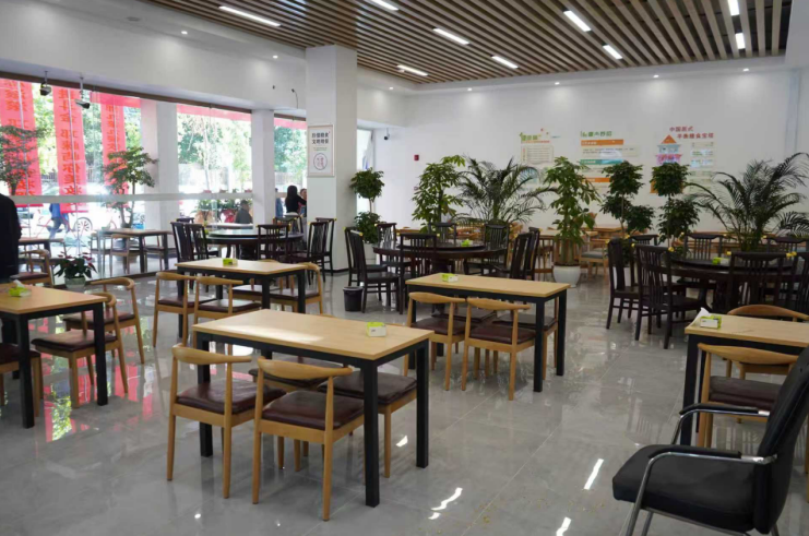 走进餐厅,环境整洁明亮。原木色餐桌椅摆放整齐,墙上张贴着温馨提示和健康小知识。中午11时30分正式开餐,回锅肉、红烧肉、番茄炒蛋、豆花、血旺、时令蔬菜等十余种菜品,摆放在菜案上。一粥一饭藏暖意,一勺一筷见真情。老人们一边品尝可口的饭菜,一边聊家常,脸上洋溢着幸福的笑容。