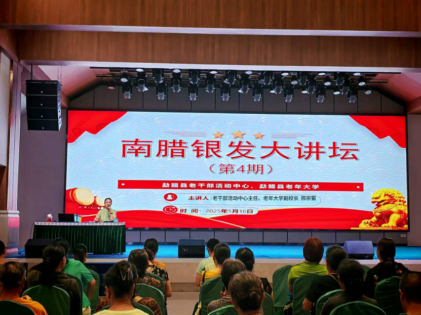 以新时代中国特色社会主义思想为指引,构建“理论+实践”思政课堂体系,引导银发学员将学习成果转化为服务群众的实际成效。打造“银龄”思政第一课堂——南腊银发大讲坛,10名党校讲师、各领域业专家学者等走进讲坛,开展多元化的“思政乐学”课堂活动8期,引导银发学员筑牢思想根基,激发“老有所为”新动能;在邦善村、关累村等抵边村寨开设“红领巾听老教师讲故事”、“老少共筑民族情”等思政课堂,依托县老年大学“送文化下乡”、“送教育下乡”等活动,组织银发学员入村开展思政课31期,惠及各族群众1120余人,将党的创新理论知识送到群众“家门口”。