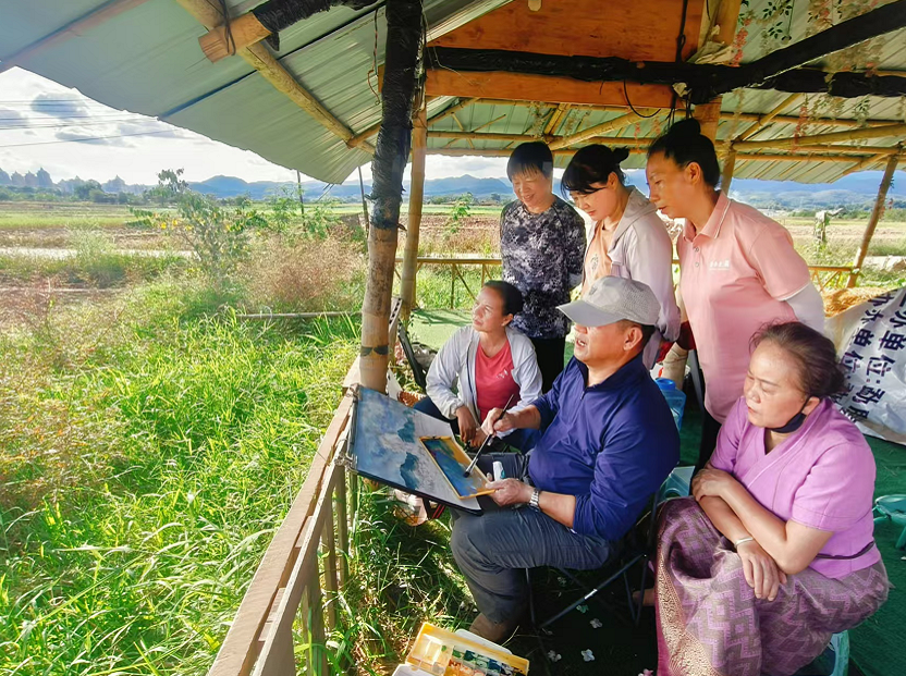 依托边境乡镇老年大学分校、教学点,开设法治、美术、音乐、舞蹈等专业课,推动优质文化资源向边境一线下沉。法治课上,银发学员化身国家安全教育宣传员开展“国门银发智囊送法到家”宣讲活动,普及国家安全法等法律知识,筑牢边境安全防线;美术课上,银发学员化身艺术家开展“墨育幼苗”暑期绘画公益课,教授孩子们基础绘画技法,让中华文化在中老边境线上焕发光彩;音乐课上,银发学员教孩子们唱《送别》、《歌唱祖国》等经典歌曲,让红色基因在孩子们稚嫩的心田悄然生根;舞蹈课上,银发学员为村文艺队讲解民族舞蹈文化内涵,教授舞蹈分解动作,丰富边境群众的精神文化生活。