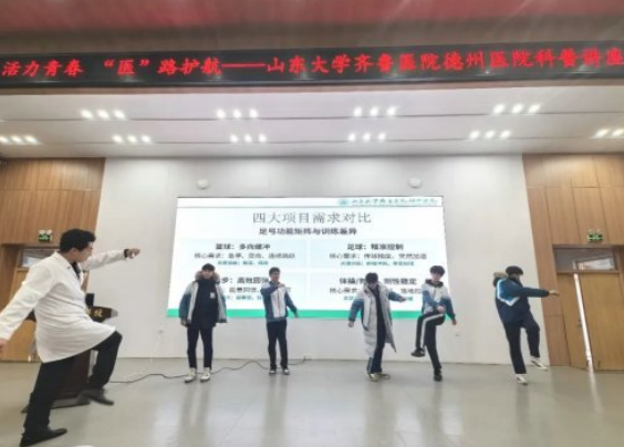 活动现场,运动医学科副主任、博士李明,主治医师李忠浩、鲁林涛,病区护士长夏东晓,康复医学科主管技师陈雷等多位专家,分别围绕学生运动损伤概况与预防、足弓功能与运动表现、半月板保护、青少年体态与压力管理等主题开展科普讲座。通俗易懂的语言、鲜活详实的案例,搭配热烈的现场互动,让师生们受益匪浅,不仅学到了实用的健康知识,更树立了科学运动、主动防护的健康理念。