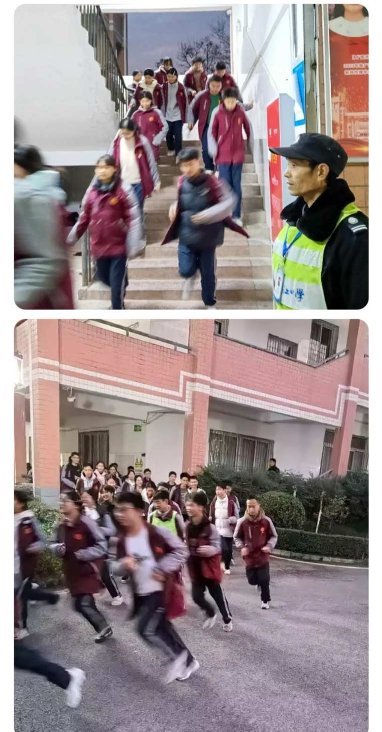 18时30分,夜间应急警报准时响起,演练正式开始。学校领导、年级班主任、学生处工作人员及保安人员已提前到岗,在各楼层、出口及操场负责疏导与秩序维护。学生迅速响应,按照既定路线有序疏散:教室内学生立即起身,整由班主任带领快速撤离;走廊内学生排成单列,弯腰低姿沿右侧行进;楼梯间学生保持间距,避免推挤;出口处学生依次撤离,由保安引导至操场指定区域。整个疏散过程用时2分50秒,全体师生安全到达操场,无人员滞留或意外情况发生。