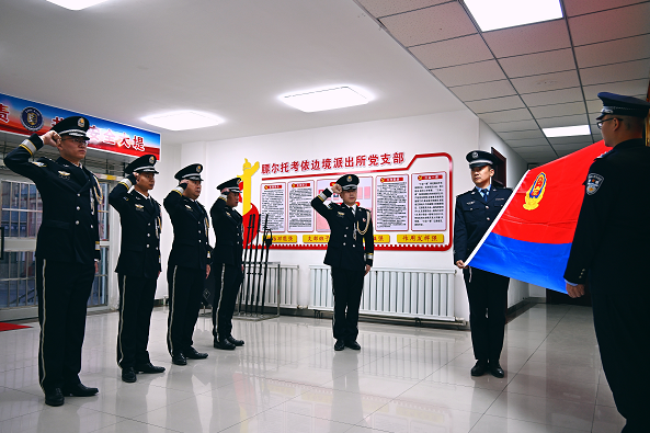 期间,派出所民警通过向警旗宣誓、与警旗合影、合唱警歌等形式,庆祝人民警察节的到来,进一步铸牢忠诚警魂,坚定理想信念。(新疆出入境边防检查总站克州边境管理支队乌恰边境管理大队膘尔托考依边境派出所 刘楠 克州边境管理支队乌恰边境管理大队膘尔托考依边境派出所所长 刘晓勇)