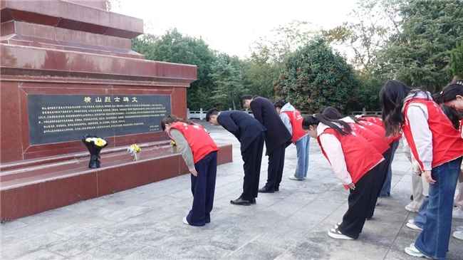 松柏苍翠,丰碑矗立。队员们怀着无比崇敬的心情,列队来到横山烈士纪念碑前。纪念碑巍然屹立,象征着革命先烈们不朽的精神。全体队员肃立默哀,深切缅怀为革命事业英勇献身的烈士。随后,大家缓步上前,将手中的鲜花敬献于碑前,并深深鞠躬,表达对革命先烈的无限哀思和崇高敬意。青山埋忠骨,史册载功勋,英烈们的精神必将永垂不朽,激励后人。