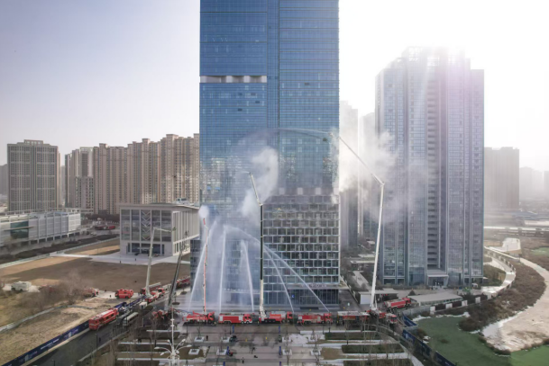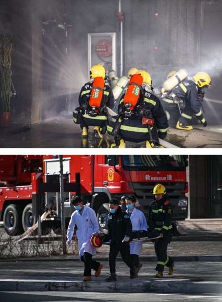 演练结合高层建筑火灾特点,紧贴灭火救援实战需要,共设置灾情研判、人员疏散、内攻搜救、内部灭火、外部控火、火场供水、医疗救护、战勤保障等12大类46项演练科目,采取“单位自救+消防救援、固定设施+消防处置、外部控火+内攻搜救”的战术措施,全流程、全要素、全过程体现“固移结合、防消结合、技战结合、人装结合”的作战理念。
