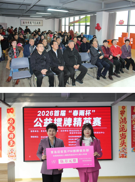 本网青岛讯 冬日暖阳沐人心,公益掼牌聚温情。1月17日,一场别开生面的公益赛事——2026首届“春雨杯”公益掼牌精英赛在春雨残疾人辅助性就业中心盛大举行。本次赛事由青岛迈吉克/PM掼牌俱乐部与青岛市春雨残疾人辅助性就业中心联合主办,青岛市掼牌运动协会、青岛市女企业家协会、青岛市肢残人协会指导支持,百余名参赛选手与爱心人士齐聚一堂,共同见证了竞技乐趣与公益初心深度融合的温暖时刻。