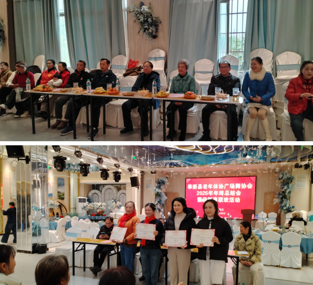 联欢活动结束后,广场舞协会会长黄绪兰对协会 2025年工作进行了总结,对 2026年工作进行了部署,会上,县老年体协主席邹俊明、副主席杨明亮及老领导罗秀莲为协会优秀工作者颁了奖。(熊开芳 熊斌)