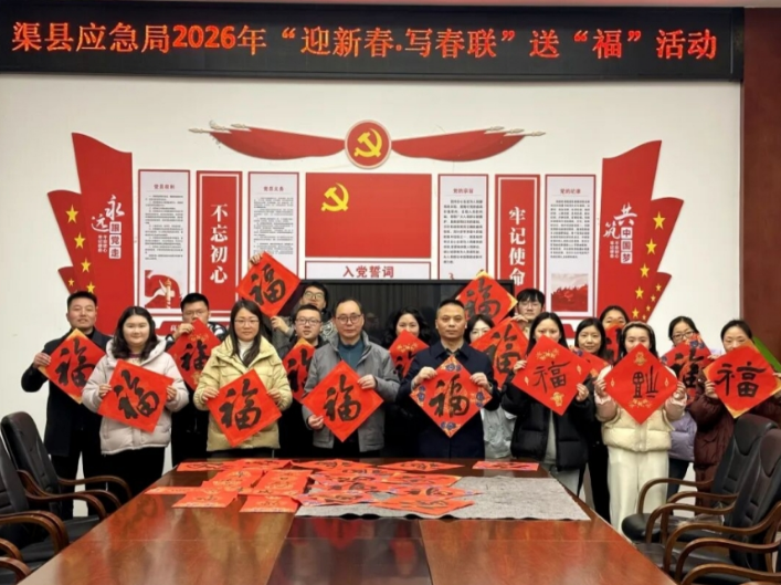 本网四川达州讯(杜靖宇 观理 报道)新春将至,年味儿渐浓。为弘扬中华优秀传统文化,提升干部职工凝聚力,渠县应急管理局邀请市书协理事、县书协副主席吴帆,在局三楼小会议室开展“写春联·迎新春”送“福”活动,为干部职工提前送上浓浓的节日祝福。