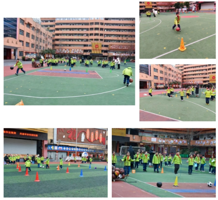 绿茵场上,宝贝们欢呼雀跃,参加跳绳比拼、套圈游戏,挑战足球带球绕杆与篮球运球绕杆,动作敏捷,身姿矫健。“哔——”哨声响起,大家你追我赶,默契配合,闯关成功。初雪飘洒,汗水闪耀,运动激情点燃整个校园。