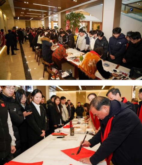 活动中,书画艺术家们向学校捐赠了多幅作品,以艺术形式寄托对学子成才的殷切期望。随后的迎春笔会气氛热烈,艺术家们现场挥毫书写春联、绘制“福”字,将红色文化的深厚底蕴与新春的祥和祝福融为一体,在墨香中传递温暖与关怀。