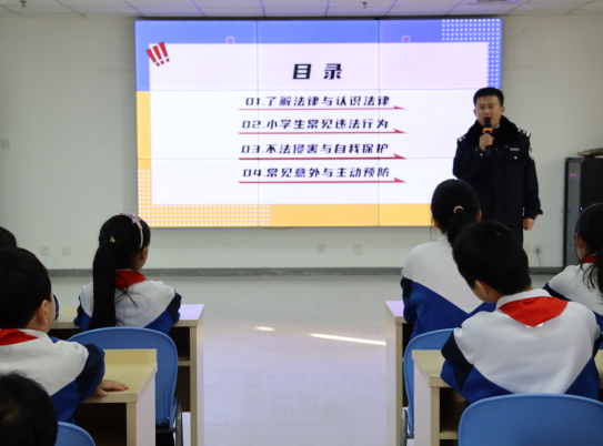 为增强小学生法治观念和自我保护意识,1月23日上午,青岛市公安局城阳分局火炬路派出所社区民警走进广博路小学,开展主题法治宣传活动,为同学们送上一堂生动实用的安全“必修课”。