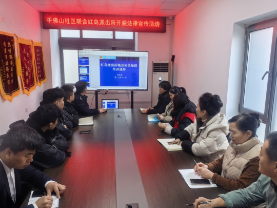 为推进基层法治建设,提升矛盾纠纷处置能力,1月22日,红岛派出所联合千佛山社区开展法律宣传培训活动。社区民警现场授课,社区、物业工作人员及居民共同参与,围绕生活高频法律问题深入学习交流,让法治精神扎根基层治理一线。