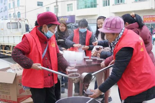 农历十二月初八,是娑婆教主本师释迦牟尼佛成道纪念日;同时亦是华厦民族传承了千年的传统习俗节日;1月26日清晨,乐安县佛教协会会长(万龙古寺住持):释净涵法师携寺院众僧侣、皈依弟子及寺庙义工等慈士,不畏严寒,早早就起床,将头日备好的粥料于凌晨前在寺院中熬煮好,盛入盆器中,迎着清晨的第一缕阳光,来到鳌溪镇象山桥农贸市场对面群众休闲广场上,为广大市民朋友奉上一碗熬煮好的“福粥”和一幅幅春联,以此与信众共修布施与结缘之德。