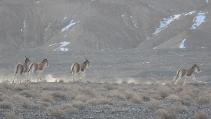 本网甘肃讯(臧秀娟 通讯员 杨晓梅)近日,安南坝保护区的监测数据持续传来捷报,国家一级保护动物藏野驴的活跃频次显著提升,频繁以群集姿态亮相,从萨尔塞以北到乌什喀特云台的奔腾驰骋,从拉配泉到斯木图的从容现身,红外相机、无人机与地面巡护多重记录,藏野驴多次活跃于监测镜头之下,不仅展现了这一“高原精灵”的生命活力,也共同印证了安南坝保护区生态保护工作取得扎实成效。