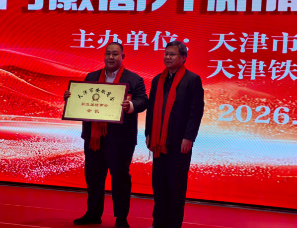 天津市投资促进局刘文闯处长在致辞中,向新当选的商会领导班子表示祝贺,向长期以来关心支持天津发展的企业家们致以感谢。在总书记视察天津重要讲话精神指引下,天津市委、市政府全面推进高质量发展“十项行动”,聚焦“三新”“三量”要求,经济发展实现质的有效提升和量的合理增长。2025年全市地区生产总值增长4.8%,一般公共预算收入增长4.1%,上合组织峰会在津成功举办,为天津发展汇聚了全球智慧、注入了强劲动力。
