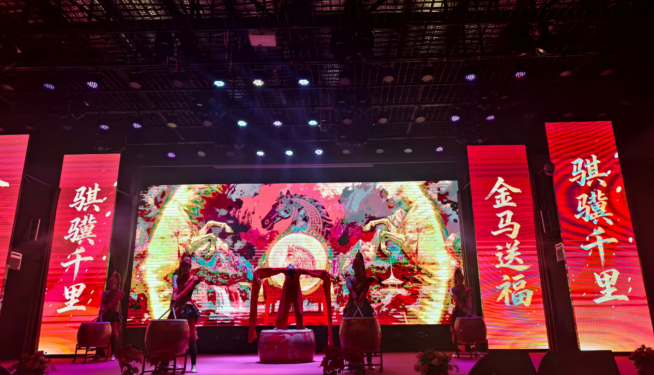 下午13:30时许,年会准时开始。会议厅内威风锣鼓的鼓点激昂响起,正式拉开白马园年会的序幕。鼓槌起落如急雨叩阶,锣钹交响似江河奔涌。铿锵轰鸣激荡会场,不仅展现出昂扬向上的精神风貌,更点燃了每个人心中炽热的家国情怀。