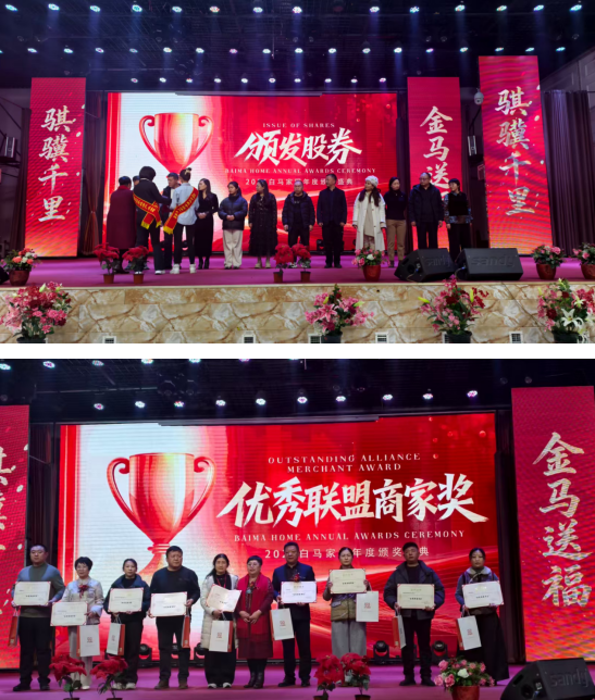 年会为企业家李梓嘉颁发第三季度汽车大奖,为王安增、胡素巧等12 名企业家颁发2025年第四季度奖励,为120位企业家颁发颁发股券证书;为河南省南乐县佳森养殖场马根粉、山东省曹县海城水产张建峰、江苏省邳州汽车联盟黄庚10位企业家颁发“优秀联盟商家”奖证书;为山东日照陈桂云、北京昌平艾玥宁等10位企业家颁发颁发“优秀服务商奖”证书;为石桂红、宫成石等6位企业家颁发“优秀部门奖”证书。