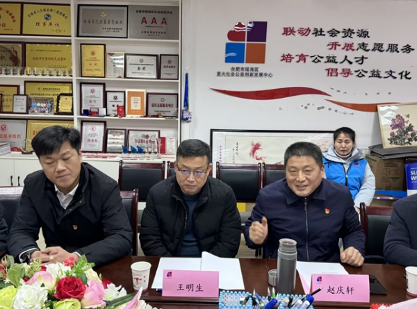 岁序更替,暖意盈怀。1月31日下午,安徽省山东商会党支部牵头,联合合肥市菏泽商会党支部、合肥市青岛商会党支部及爱心企业党支部代表,走进合肥市瑶海区星火社会公益创新发展中心党支部,以“联合学习强党性、结对共建践初心”为主题,共同学习总书记2026年新年贺词精神,将理论学习与公益实践深度融合,用实际行动诠释“学思用贯通、知信行统一”的党建要求,奏响了“党建红引领公益蓝”的新春暖心乐章。