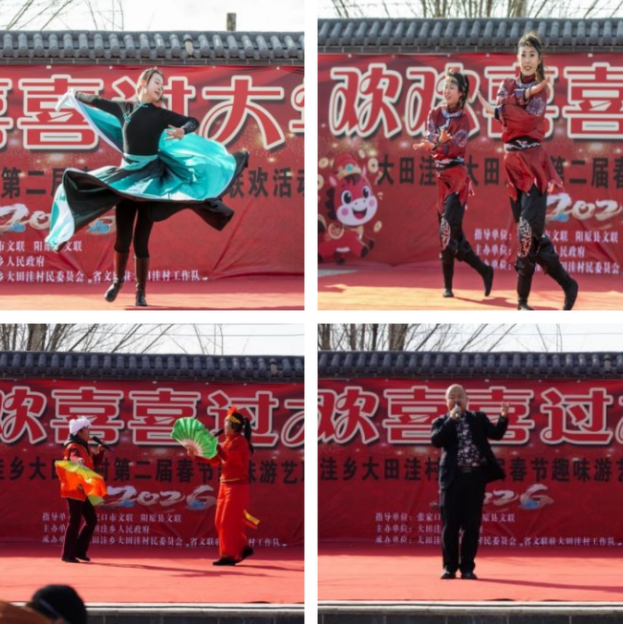 综合文艺演出环节,村民自编自演节目与专业艺术展示同台亮相,村民们以歌声、舞蹈传递新春喜悦,展现新时代村民风貌,精彩表演赢得阵阵掌声。