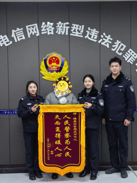 “太感谢你们了,没想到被骗的钱还能一分不少地追回来!” 21000元失而复得,遭遇电信诈骗的刘女士(化名)难掩激动,将两面印有“人民警察为人民,失而复得暖人心”的锦旗分别送到雄县公安局城关刑警队与反诈中心。此前,在刘女士(化名)遭遇“抖音关闭月付款”电信诈骗后,城关刑警队与反诈中心民警第一时间围绕资金流、信息流深度研判,抽丝剥茧,快速锁定取现犯罪嫌疑人踪迹。为及时帮群众挽损,民警不辞辛劳、奔波千里,全额追回21000元被骗资金,并第一时间返还至受害人刘女士(化名)手中。
