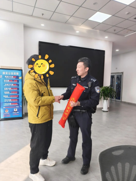 群众利益无小事,一枝一叶总关情。1月30日晚20时许,槐香河派出所接到群众董先生报警,称其放在住所楼道内的一盆花被人拾走。接报后,民警马士骏、王虎立即赶赴现场开展工作。在雄安5110警务协同群组的支援下,民警仅用2小时就精准锁定嫌疑人位置,成功将花卉追回。当晚22时许,这盆承载着董先生心意的花卉被顺利返还。2月3日下午,董先生专程来到派出所,将一面锦旗送到民警手中,对民警的为民精神和专业素养表示高度赞扬和衷心感谢。