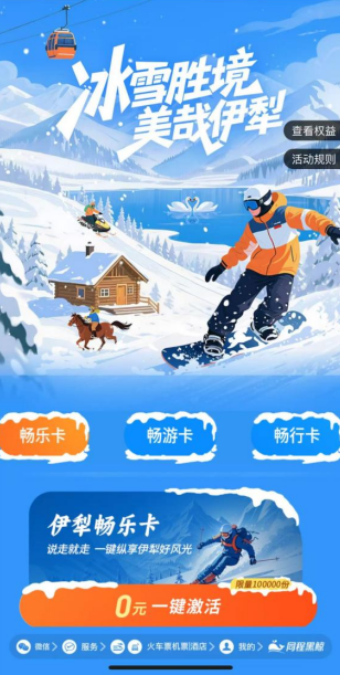 三种卡型权益清晰、互补性强,形成了从“初步体验到深度游玩”的梯度吸引力,有效期至至2026年3月31日,贯穿新疆整个雪季,解锁冬日伊犁新玩法。无论是杏花沟的春色烂漫、那拉提的夏日碧浪,还是伊宁的秋日鎏金、昭苏的冬日苍茫,伊犁的四季均是一幅流动画卷。本次活动精准聚焦伊犁冬季文旅禀赋,通过实实在在的优惠举措,吸引人们体验伊犁冬季运动、温泉康养、民俗节庆等多元魅力,亲身感受“美哉伊犁”的冰雪另一面。此次活动不仅丰富伊犁旅游供给,更有助于打破季节局限,有效拉长旅游旺季,切实将冰天雪地的“冷资源”转化为文旅消费的“热经济”。