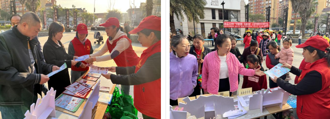 2月10日,勐海镇茶城社区组织党员、工青妇志愿者开展“迎接新春·服务群众”主题宣传活动,让惠民政策与文明新风知识送到群众家门口、心坎上。