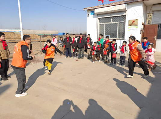 2月8日,在毕垒头村党群服务中心广场,一群孩子正高兴的做着游戏,这是爱心志愿服务组织了解到学校放假孩子们都在家中,为部分孤困儿童送去了新春礼物,带着购买的馅料和孩子们一起包起了饺子,让孩子们度过了一个快乐的星期天。