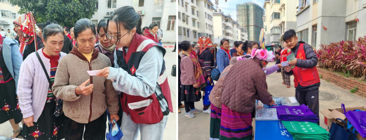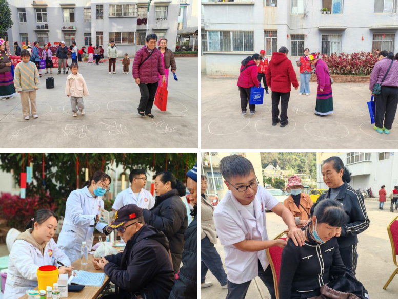 在社区党总支的牵头组织下,便民服务与政策宣传区整合多方资源开展惠民服务。义诊摊位前,勐海县中医院医护人员为居民免费测量血压、血糖,提供健康咨询与日常养生指导;勐海县疾病预防控制中心同步开展冬季健康知识普及,引导居民树立科学健康的生活理念。就业+社保惠民咨询台前,党总支安排专人面对面为居民解读就业扶持、社保办理、养老医疗等惠民政策,耐心答疑解惑,把贴心服务、暖心政策送到居民身边。