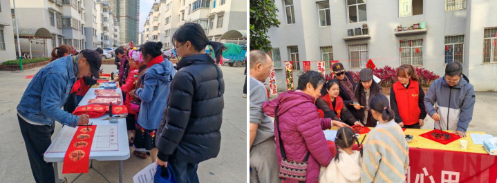 在社区党总支的精心布置下,民俗文化体验区热闹非凡。社区特邀勐海县书法协会会员现场挥毫泼墨,为居民免费书写、赠送春联与福字,一副副笔力遒劲、寓意吉祥的春联铺满桌面,居民们有序领取、喜笑颜开,在笔墨书香中感受传统年俗的独特魅力,让新春祝福走进千家万户。