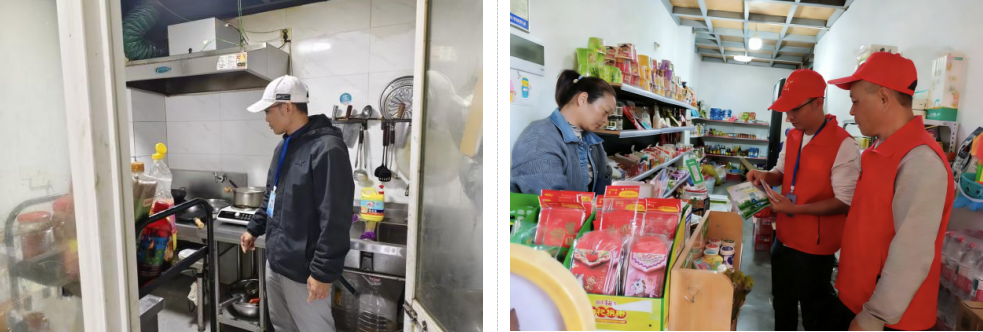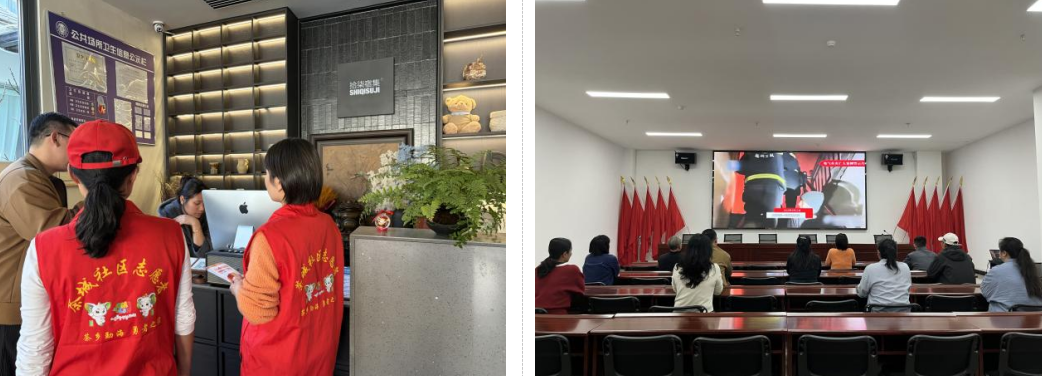 随后,社区联合网格单位组建安全宣传检查组,深入辖区酒店、餐饮门店等重点场所,同步开展消防安全与食品安全拉网式排查宣传。工作人员重点检查消防设施、疏散通道、用电用气等情况,同时核查餐饮门店食材储存、加工操作、餐具消毒等环节,现场普及消防、禁燃禁放及食品安全知识,督促商户落实主体责任、及时整改隐患,切实筑牢辖区安全防线。