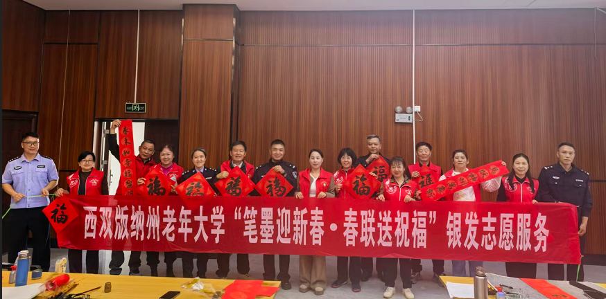 为弘扬中华优秀传统文化,传递社会温情,2月10日,州老年大学组织银发志愿服务队到州强制隔离戒毒所为民警职工写对联、送祝福,用笔墨寄深情,用祝福暖人心。
