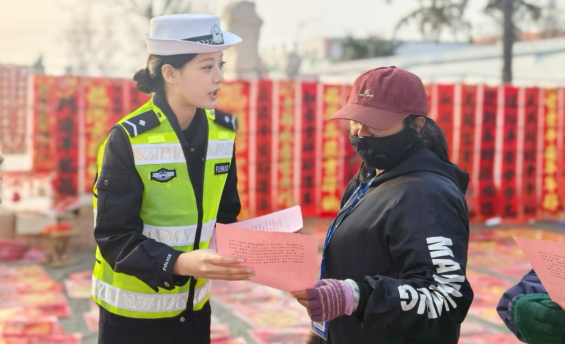 在执勤点、服务站,民警还提供热水、急救药品、简易维修、问路指引等暖心服务,用温情守护团圆路。2月4日,莱西市公安局交管大队走进文化市场,通过交通安全知识展板、宣传手册讲解交通安全知识。2月9日,支队联合平安财险青岛分公司在台东步行街举办主题宣传活动,通过宣讲互动送安全上门,提升群众安全意识与应急能力。