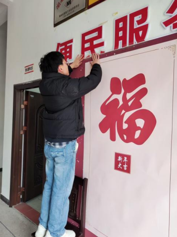 与村干部商议后,大家一拍即合。村部被收拾得干干净净,一张红彤彤的福字主题背景布、几个喜庆的手持摆件,再加上我的相机,在棉花园村干部以及两位志愿者小伙伴的帮助下,棉花园村的公益照相馆就这样简单却温馨地开张了。