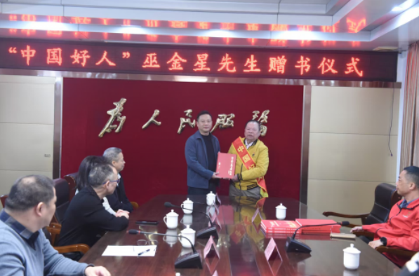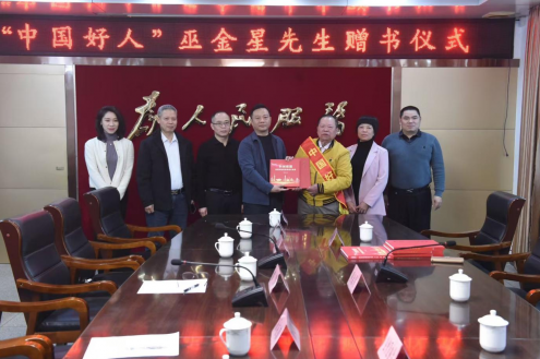 慰问活动期间,巫金星向丰顺县县委、县政府,丰顺县委宣传部,丰顺县委统战部等单位赠送了《中华慈善大典》、第三卷,向汤坑镇党委政府、县民政局,丰顺县丰顺电视台赠送《科创报国民营科技实业家奋斗实录》等七本书籍,赠书仪式在丰顺县汤坑镇三楼会议厅举行,丰顺县副县长罗灏受县委县政府所托,代表接收了书籍,各单位相关负责人参加了赠书仪式活动。巫金星表示,很感谢县委、县政府及各单位多年来对他的公益活动大力支持,一直以来,县委、县政府及各级党政机关高度重视老年人工作,为老年人积极创造更加和谐、幸福的晚年生活环境,不断提高幸福指数。是党的坚强领导才有了远达的发展,能为家乡做一些事,他感到非常自豪。这份归属感与责任感,也正是他一路坚持公益的动力。
